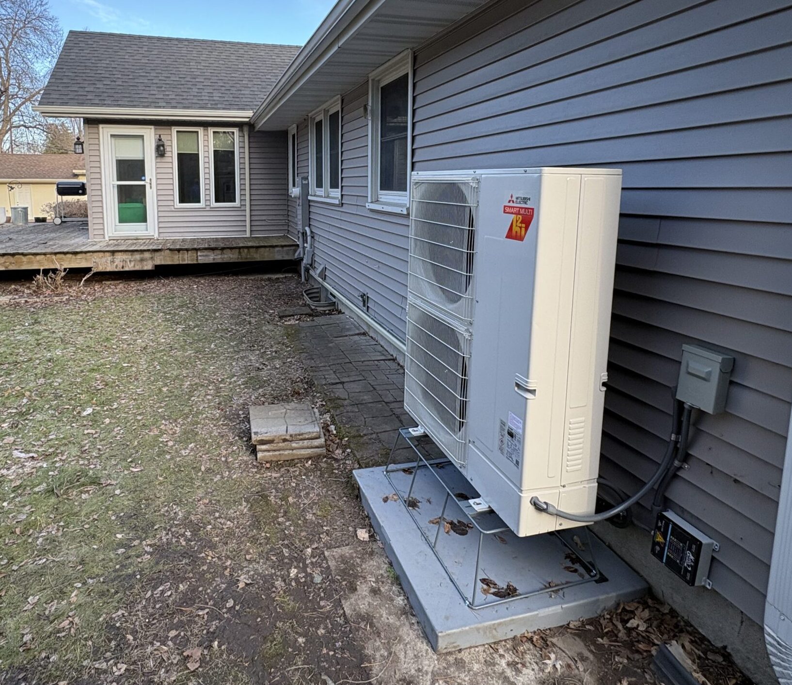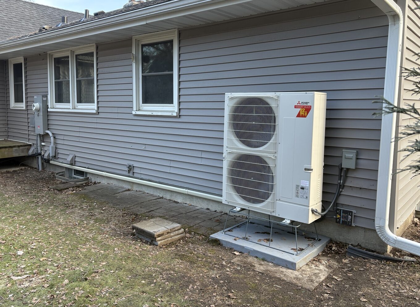 The new system combines a ducted Mitsubishi air handler for the main living areas with a ductless high-wall unit for the addition, creating a more flexible comfort solution tailored to how the home is actually used.